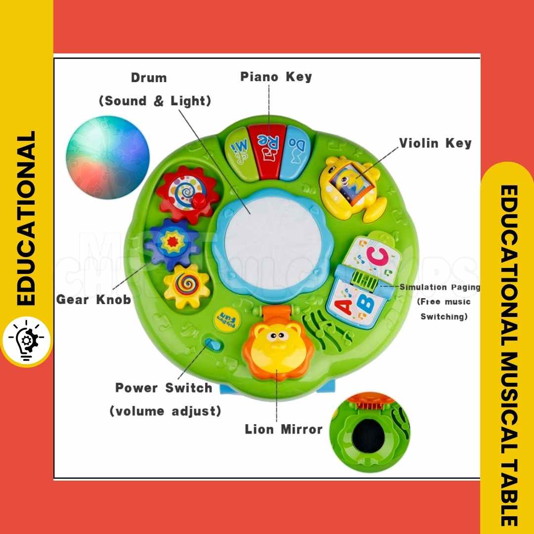 The Educational Musical Table is the perfect blend of fun educational toys and developmental play. Designed for children aged 1 to 3 years, this engaging table promotes early learning through music, movement, and imaginative play. Whether itās exploring the mini keyboard, flipping through the alphabet and number book, or spinning the day and night fish roll, every activity on this table introduces your child to new concepts and skills.